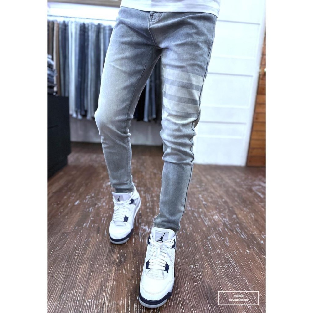 重磅丹寧牛仔布料 搶眼的線條壓印設計! 彈性超好!窄管修身版型! 五個尺寸(S、M、L、XL、XXL) *麻豆174/60穿M號尺寸拍照!