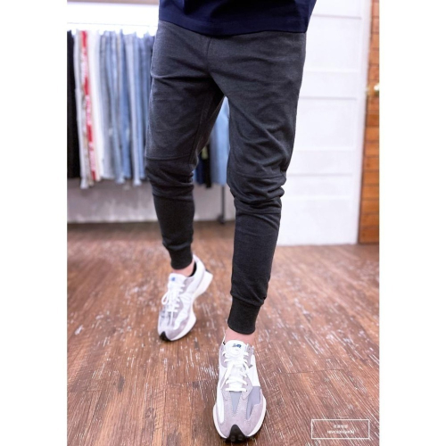 『老爺有喜』重磅拼接棉長褲 (深灰) 棉褲 台灣製 修身 顯瘦 立體剪裁 棉質長褲 彈性抽繩 縮口褲