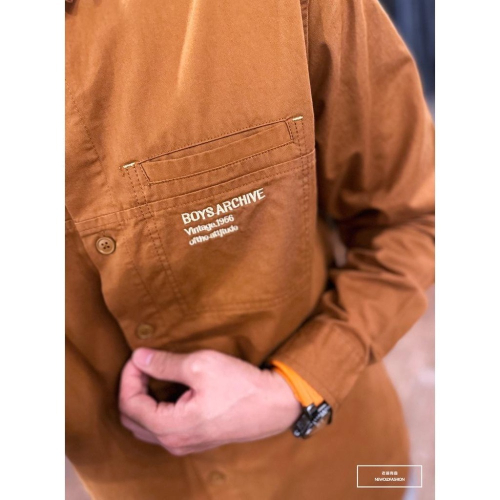 『老爺有喜』重磅拼接刺繡口袋襯衫-咖(NOF2209B8877)