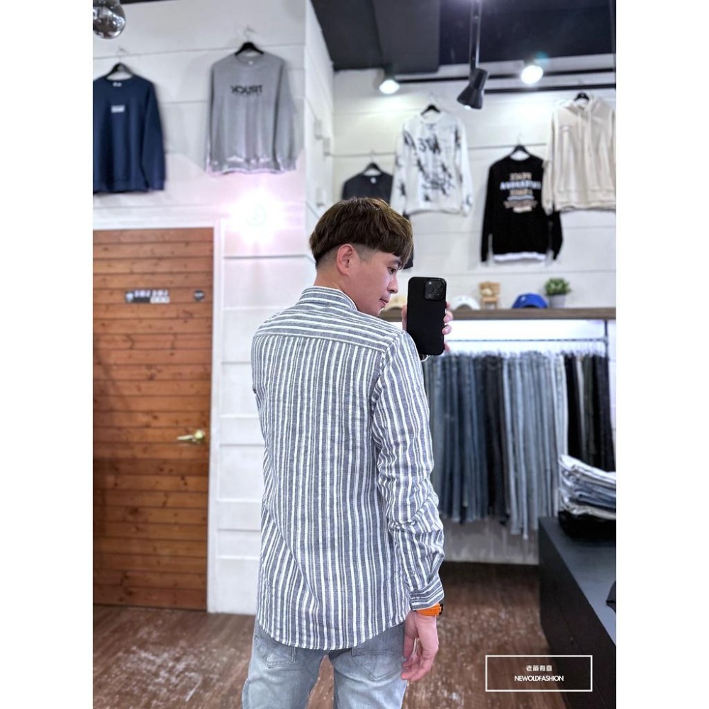 『老爺有喜』重磅條紋口袋襯衫-藍(NOF2209B8872)