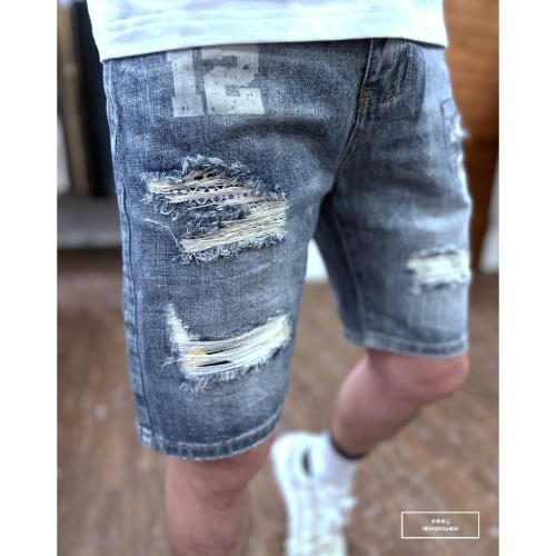 『新品上市』重磅民族風補丁破壞牛仔短褲 破壞抽鬚 日系 阿美咔嘰 五分褲 牛仔褲 男生短褲(NOF2303950)