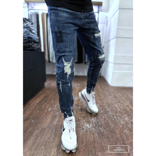 『新品上市』重磅藍印ㄑ字抓痕破壞小直筒牛仔褲(NOF23042306)