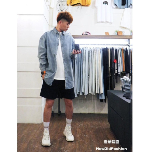 『老爺有喜』重磅全素寬版牛仔襯衫-牛仔藍