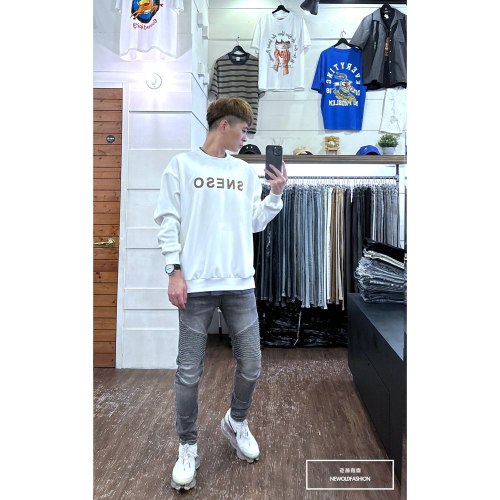 『新品上市』重磅SNESO拼接大學T-白(NOF2309B5530)