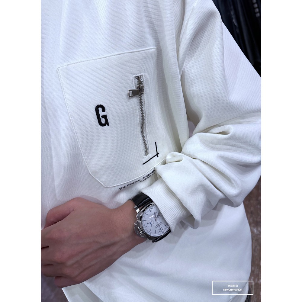 『新品上市』重磅G刺繡拉鍊口袋大學T-白(NOF2309B5531)