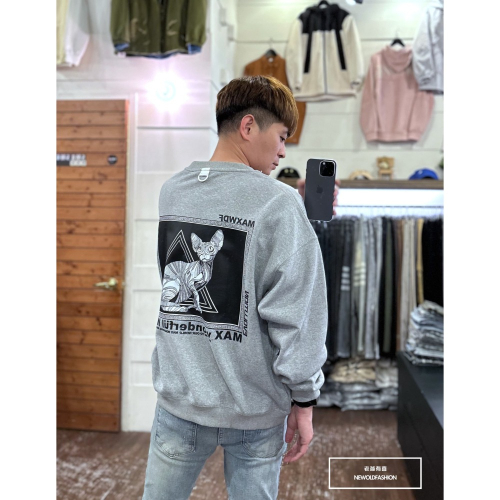 『新品上市』重磅三角埃及貓刷毛大學T-淺灰(NOF2311F011)