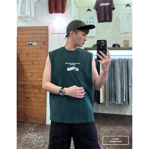 『新品上市』重磅山脈標語棉質背心(NOF2405S8008)-綠