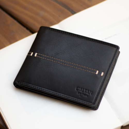 『新品上市』老爺有喜 帥氣皮革縫線短夾(071769bk)