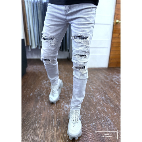 『新品上市』重磅灰白水鑽破壞小直筒褲(NOF25049119)