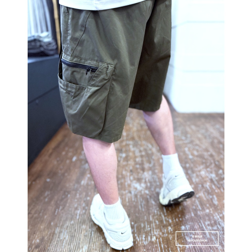 雙側雙層口袋造型,褲頭扣環綁帶鬆緊設計,可自行調整大小