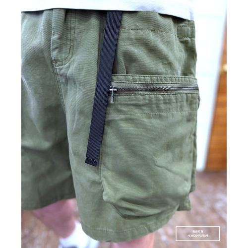 雙側多層拉鍊口袋造型,褲頭扣環鬆緊設計,可自行調整大小