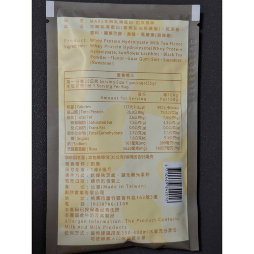 [超商上限100包]戰神 MARS水解乳清蛋白-奶茶風味~2025.05.21