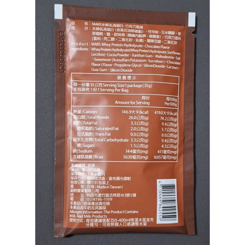 [超商上限100包]戰神 MARS水解乳清蛋白-巧克力風味/1包~2025.06.20