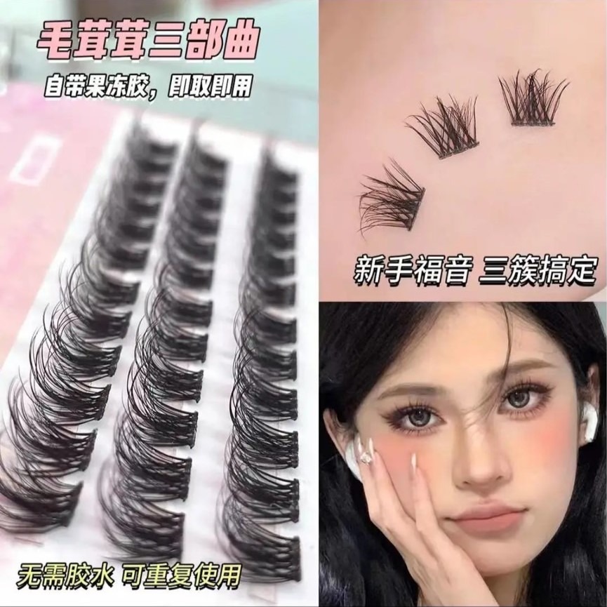 最新款 5D立體 免膠假睫毛 嬰兒濃密 免膠假睫毛 水貂睫 毛凌亂 濃密 分段 新手 三部曲 芭比 單簇 仿真