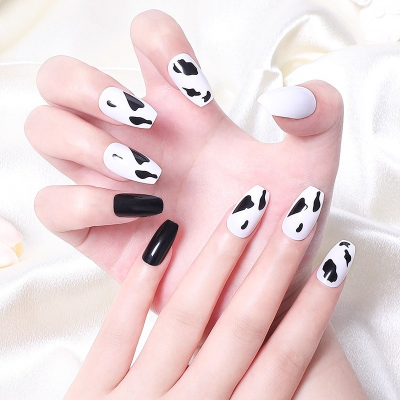黑白款 指甲片 美甲 批發指甲貼網紅顯白指甲貼果凍膠美甲貼片鑲鑽可拆卸穿戴假指甲片 長版型 Y10