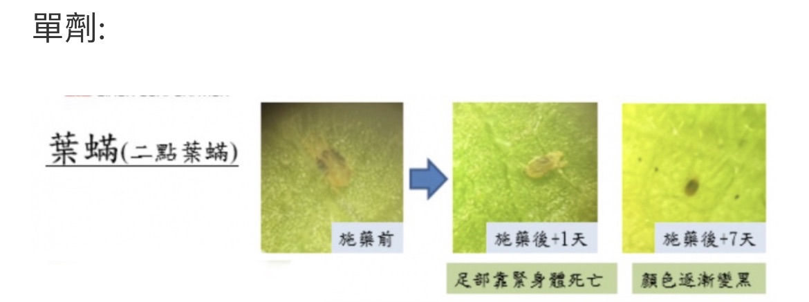 >防治對象:各種害蟲(包含鱗翅目、纓翅目、同翅目、半翅目、蟎類),刺吸式害蟲效果最為明顯。