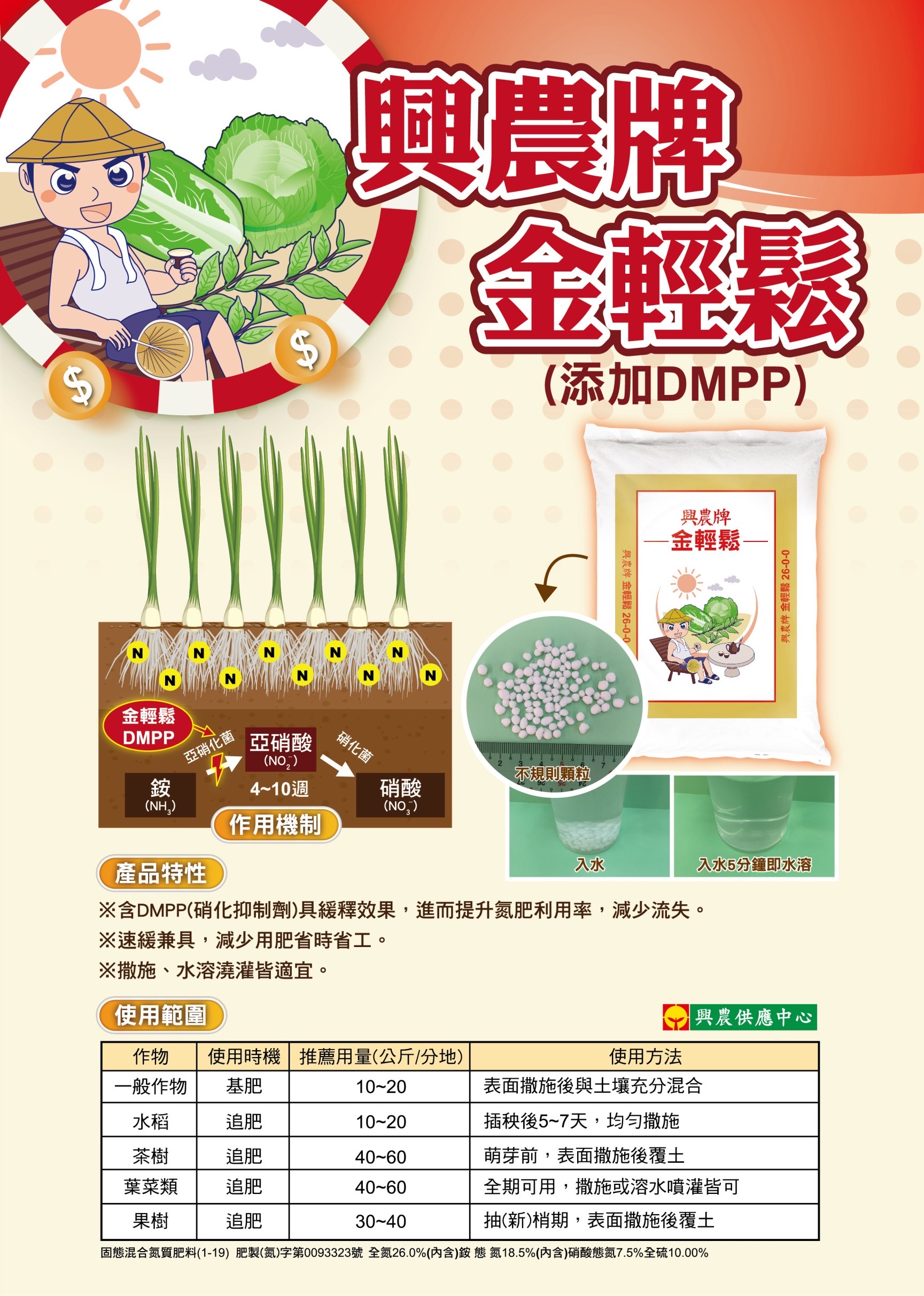 1.含DMPP(硝化抑制劑)具緩釋效果,進而提升氮肥利用率,減少流失。