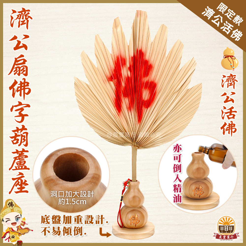 ★商品名稱: 濟公扇佛字葫蘆座/濟公師父乩身用濟公扇 植物扇 (棕櫚扇) 純手工 /招財聚財