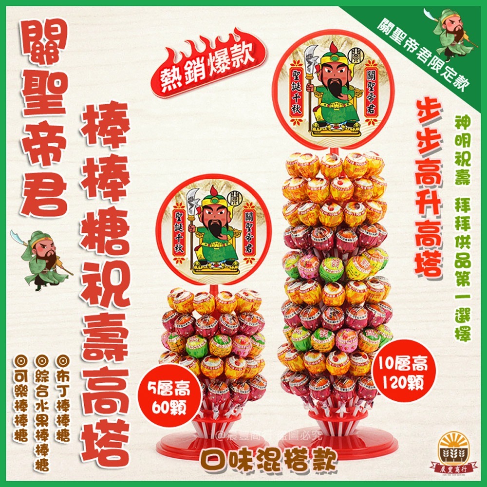 ★商品名稱: (關聖帝君)立牌精選糖果架(60入/120入)棒棒糖步步高升高塔/拜拜首選/呷平安/補財庫/棒棒糖口味混搭款