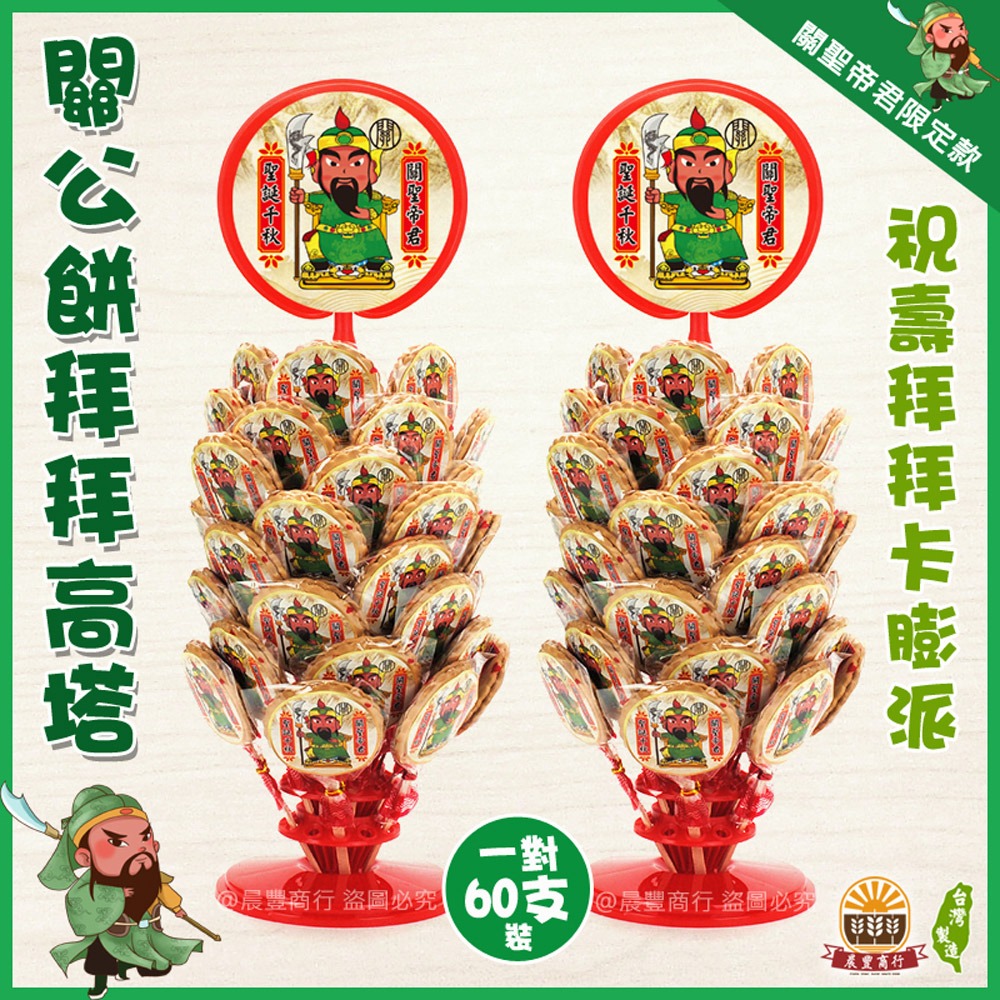【晨豐商行】(關聖帝君)立牌精選糖果架/60入/關公聖誕/祝壽最愛麥芽餅,步步高升高塔(關聖帝君餅高塔一對60入)
