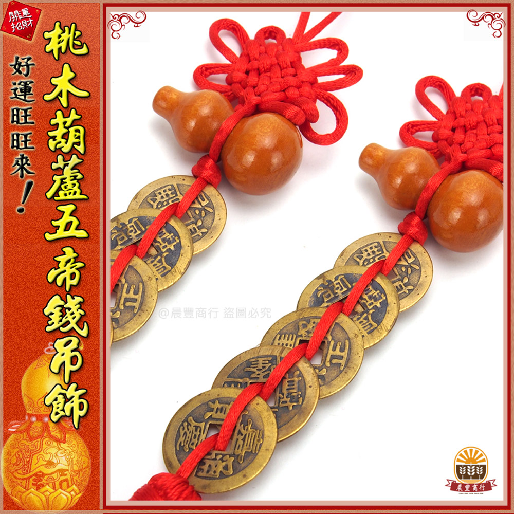 ★商品名稱: 桃木葫蘆五帝錢中國結吊飾.五帝錢吊飾 風水 招財擺飾 五帝錢 風水擺飾 銅錢 風水擺件 烘爐地