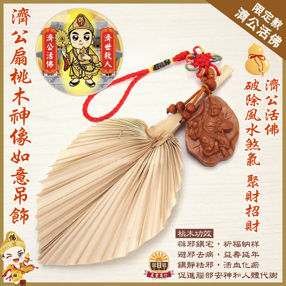 ★規 格: 濟公扇(小)+桃木神像如意吊飾