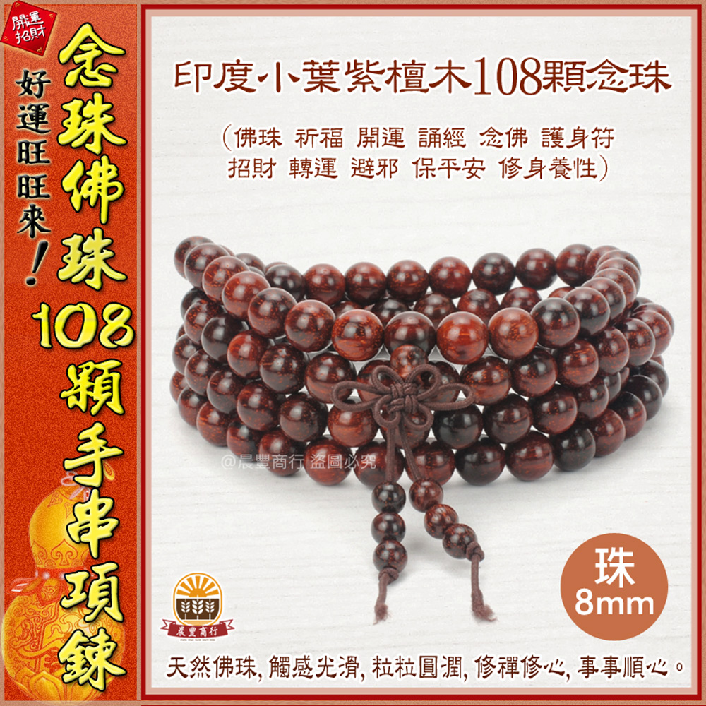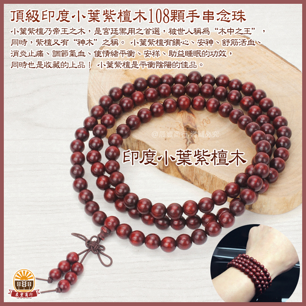 ❤️【產品名稱】天然印度小葉紫壇木108顆佛珠手鍊 圈念珠手鍊(8mm)