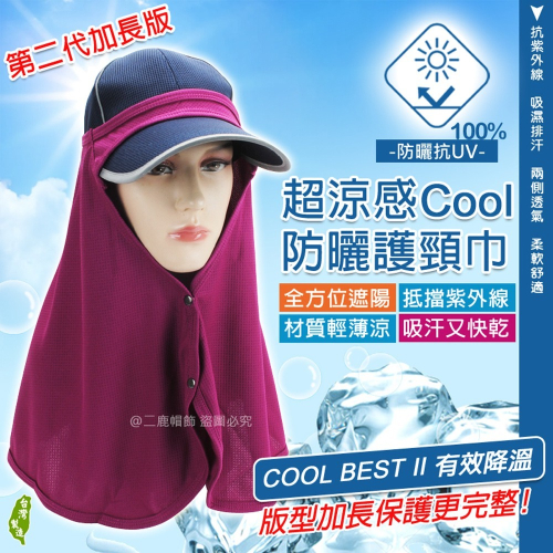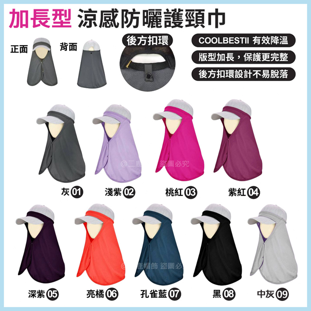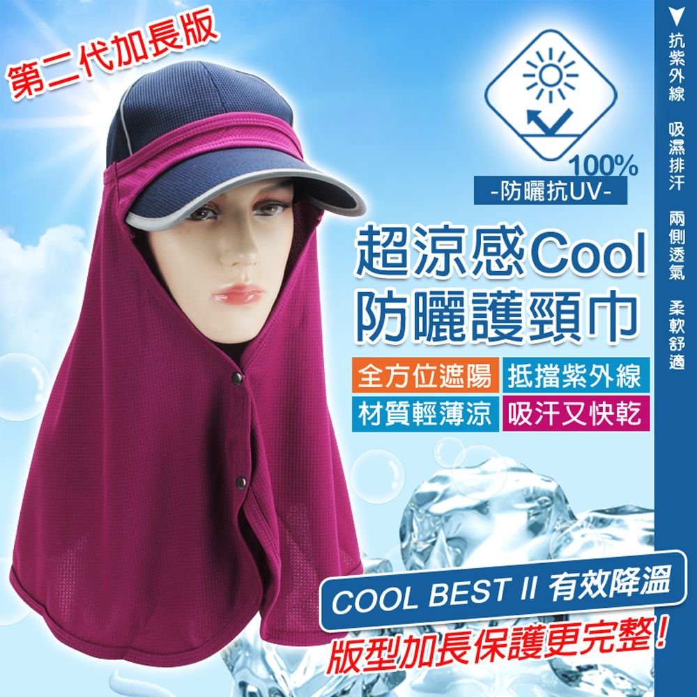 ►(第二代)COOL BEST 有效降溫防曬 抗UV-清涼節能纖維功能防曬護頸布-造型排釦/輕巧 方便 透氣
