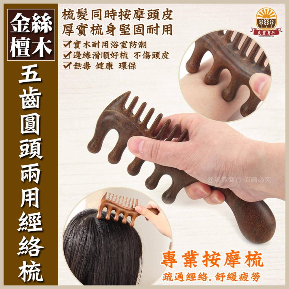 ★商品名稱: 天然金絲檀木-五齒圓頭兩用經絡梳/按摩梳/刮痧按摩養生梳/頭皮按摩/原木梳/禮物