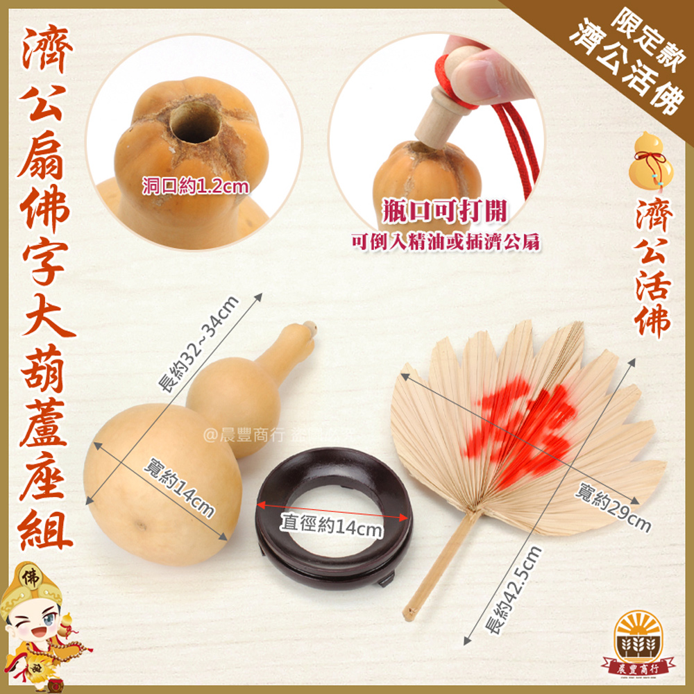 ★規 格: 大濟公扇:寬33cm,長47cm+天然葫蘆高約 32~34cm/洞口直徑:1.2cm/底座:直徑14cm