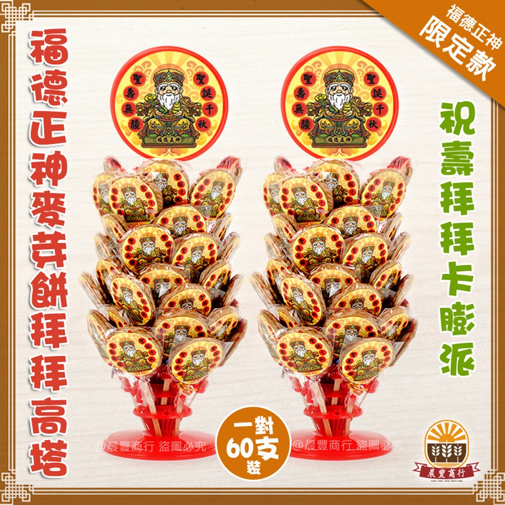 ★商品名稱: (福德正神)立牌精選糖果架/一對60入/土地公最愛.招財麥芽餅,步步高升高塔.拜拜首選.呷平安.補財庫