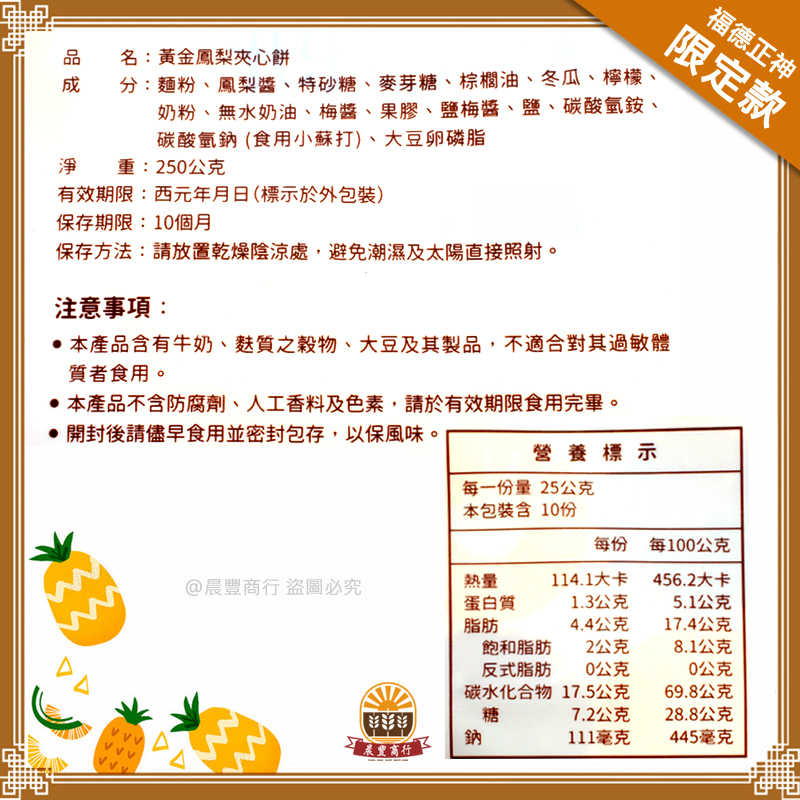 ★內容物: 昇田黃金鳳梨夾心餅*20片裝(昇田食品出品)
