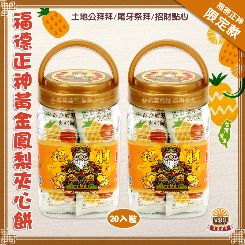 ★商品名稱: 福德正神聖誕千秋-土地公最愛*昇田黃金鳳梨夾心餅.方桶瓶裝/20入