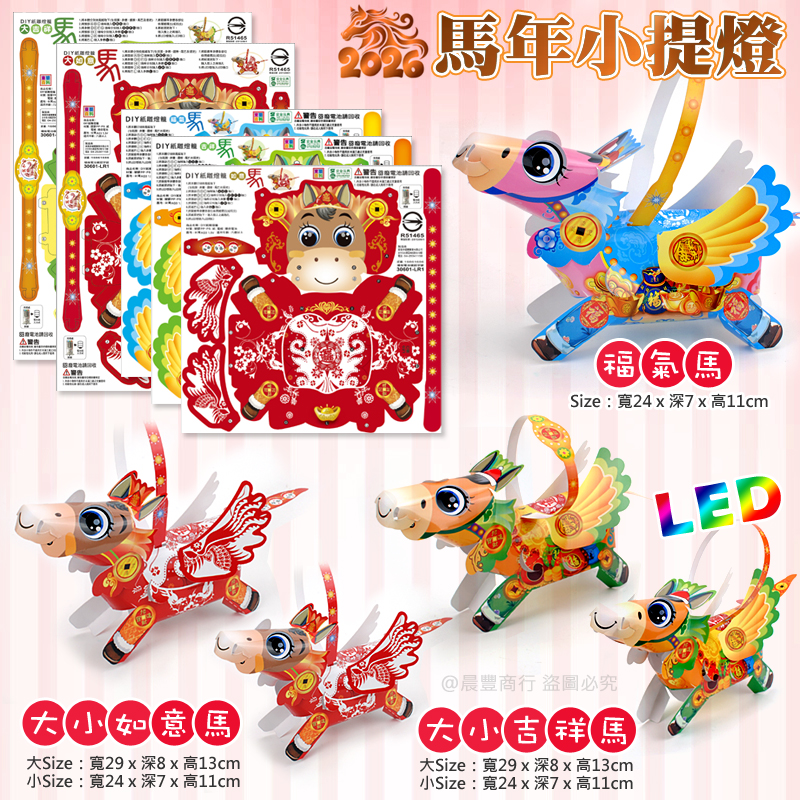 【2026 台灣燈會燈籠】DIY親子燈籠(如意馬)(吉祥馬)(福氣馬)馬年小提燈/紙燈籠(大/小)