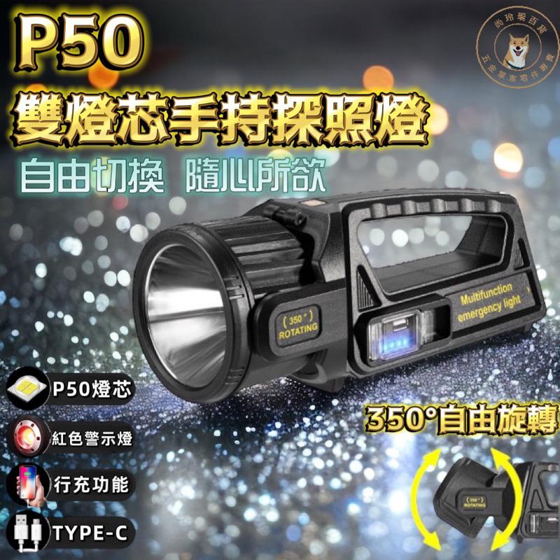 led強光手電筒 黄白紅光探照燈 多功能手提燈 TYPE-C USB充電 6檔 防水露營家用應急照明