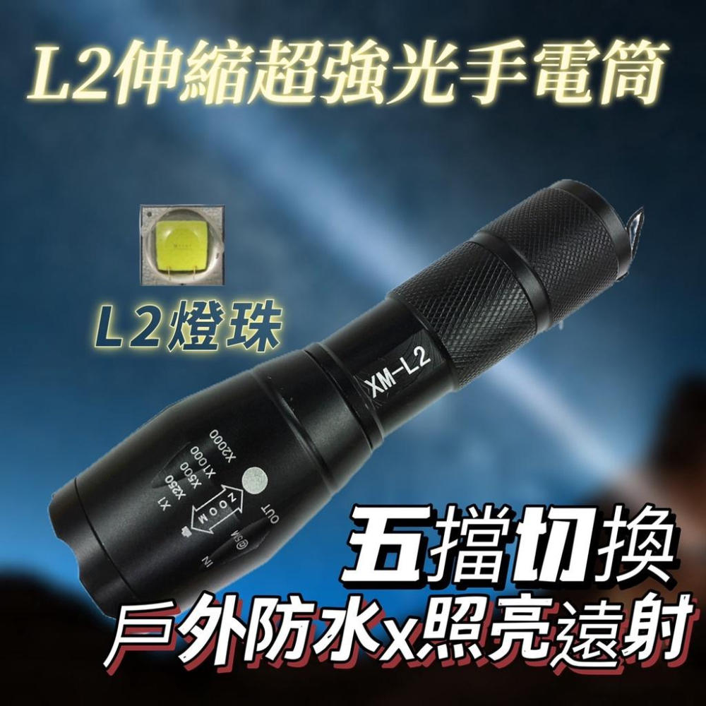尚玲瓏百貨 L2 LED戶外騎行遠射 充電防水伸縮變焦強光手電筒 露營/工地/修車/出遊