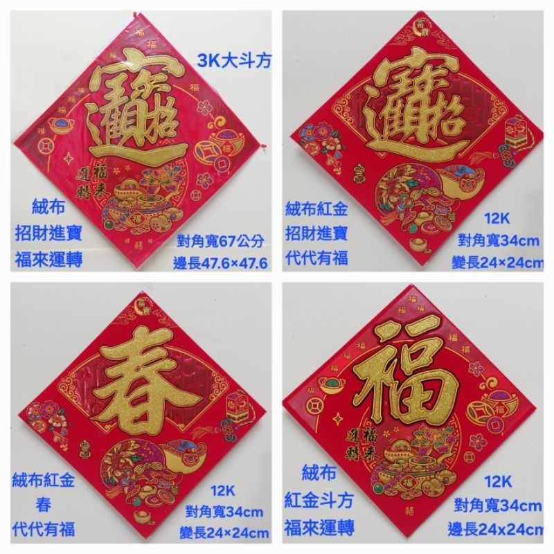 [洽興] 絨布紅金斗方 12K 6K 大3k 福/福來運轉.春.招財進寶/代代有福 春聯貼飾