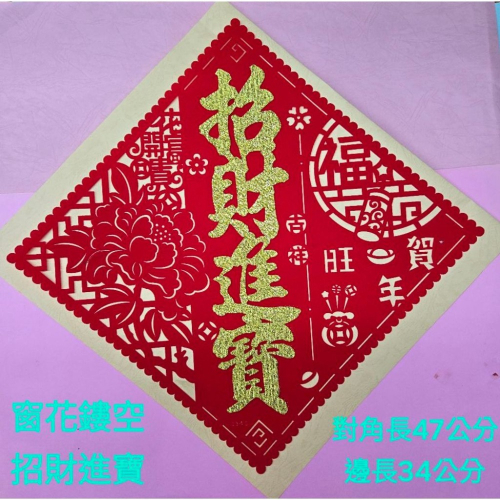 窗花鏤空 絨布 斗方春聯 -招財進寶