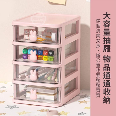 現貨 快速出貨 | 兔兔手柄 4層收納盒 桌上收納盒 文具收納盒 桌面收納 抽屜盒 置物盒 化妝品收納盒 收納盒