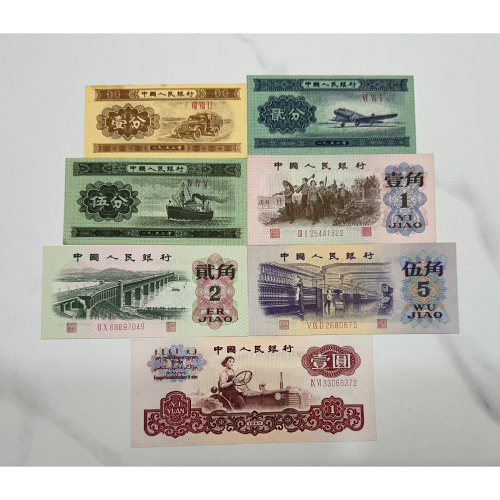 人民幣 壹分 1分 貳分 2分 伍分 5分 壹角 1角 貳角 2角 伍角 5角 壹圓 1元 7張小全套[鴻兔小舖]