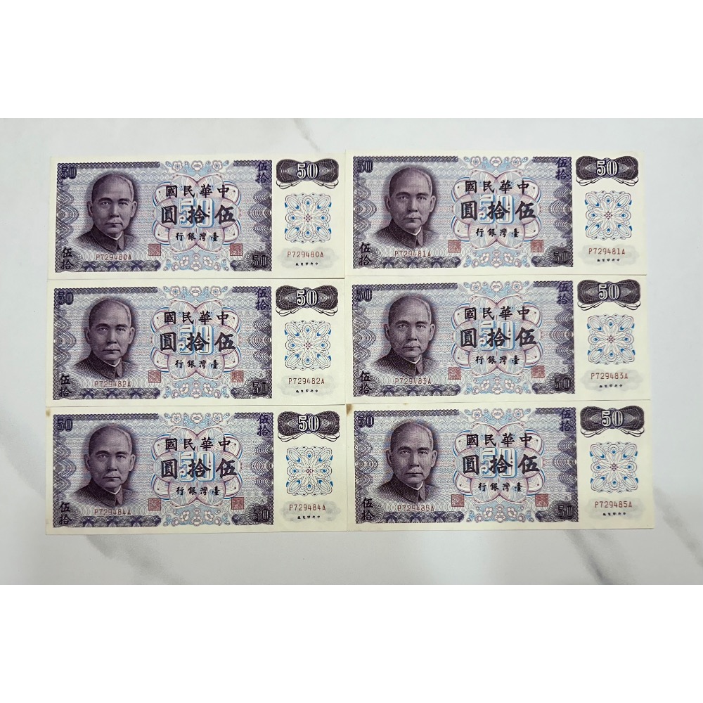 中華民國六十一年製版 民國61年 伍拾圓 伍拾元 五十元 50元 A版 連號鈔 連號紙鈔 六張一標(鴻兔小舖)