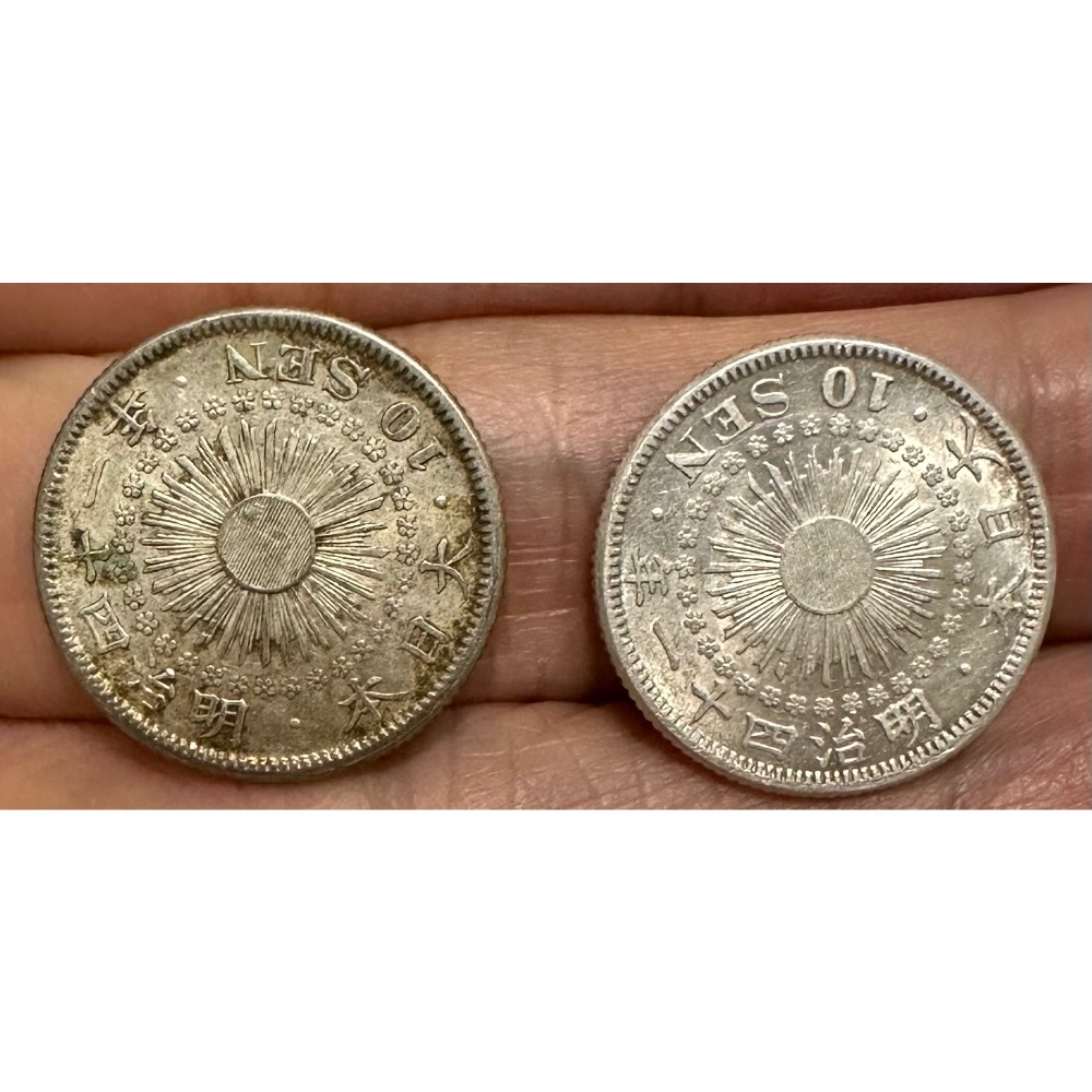 大日本 明治四十一年 明治41年 十錢 10錢 旭日 旭日銀 旭日銀幣 日本銀幣 日本錢幣 $300/枚[鴻兔小舖]