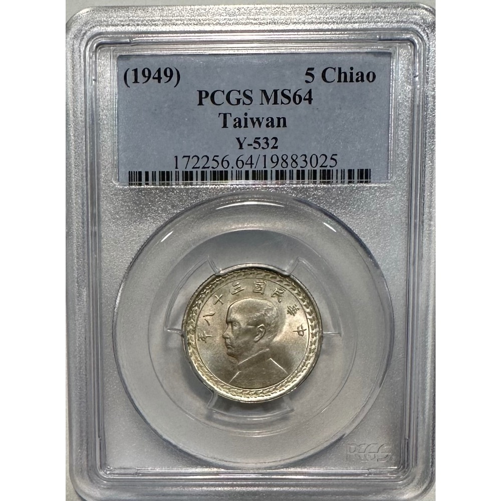 中華民國三十八年 民國38年 伍角 五角 5角 銀幣 錢幣 蕃薯 地瓜 PCGS MS64 鑑定幣 評級幣 [鴻兔小舖]