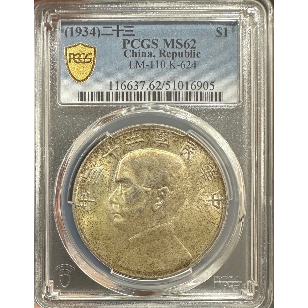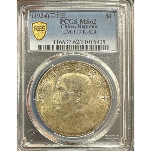民國二十三年 23年 孫中山 頭像 孫像 壹圓 一元 1元 帆船 船洋 銀幣 金黃色包漿 PCGS MS62[鴻兔小舖]