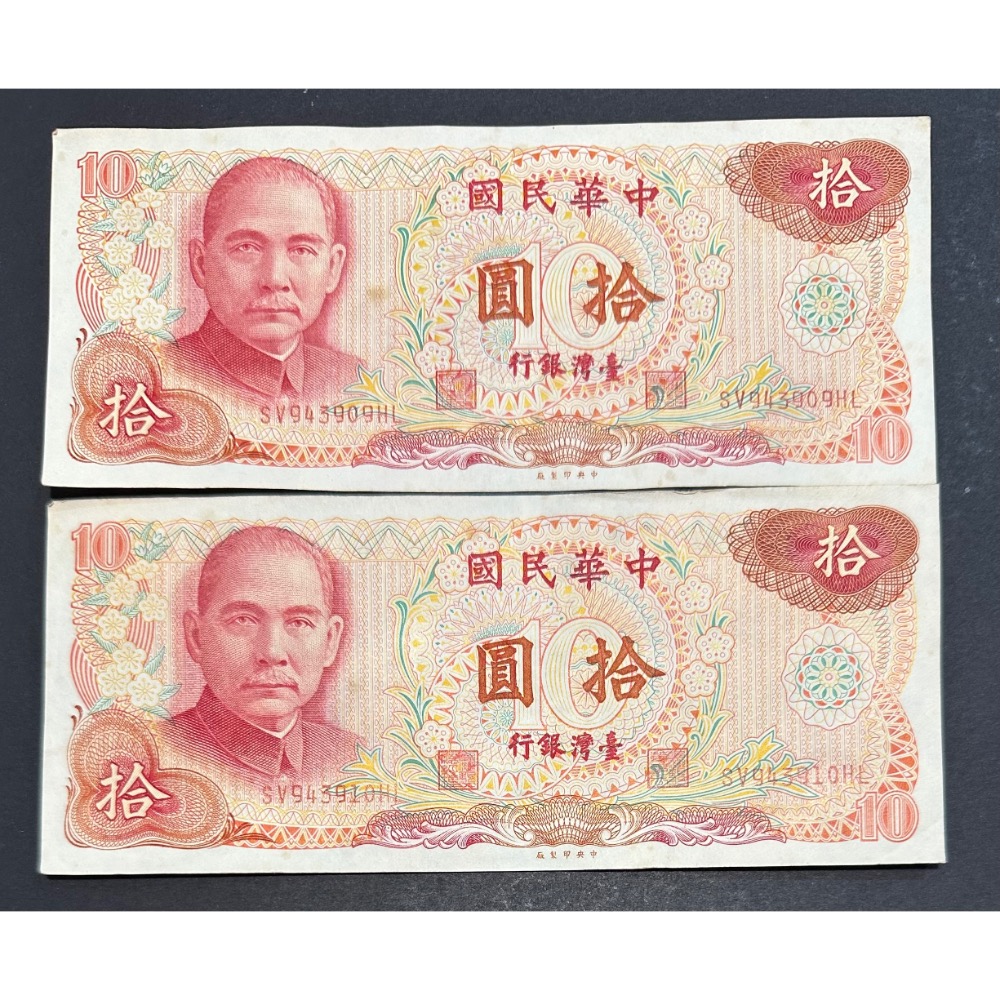 中華民國六十五年製版 民國65年 拾圓 十元 10元 連號鈔 連號紙鈔 兩張連號 兩張一標[鴻兔小舖]