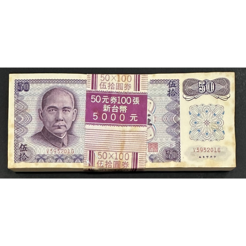 中華民國六十一年製版 民國61年 伍拾圓 五十元 50元 B版 帶雙3 百連號 百連鈔 整刀 刀貨 百張連號[鴻兔小舖]