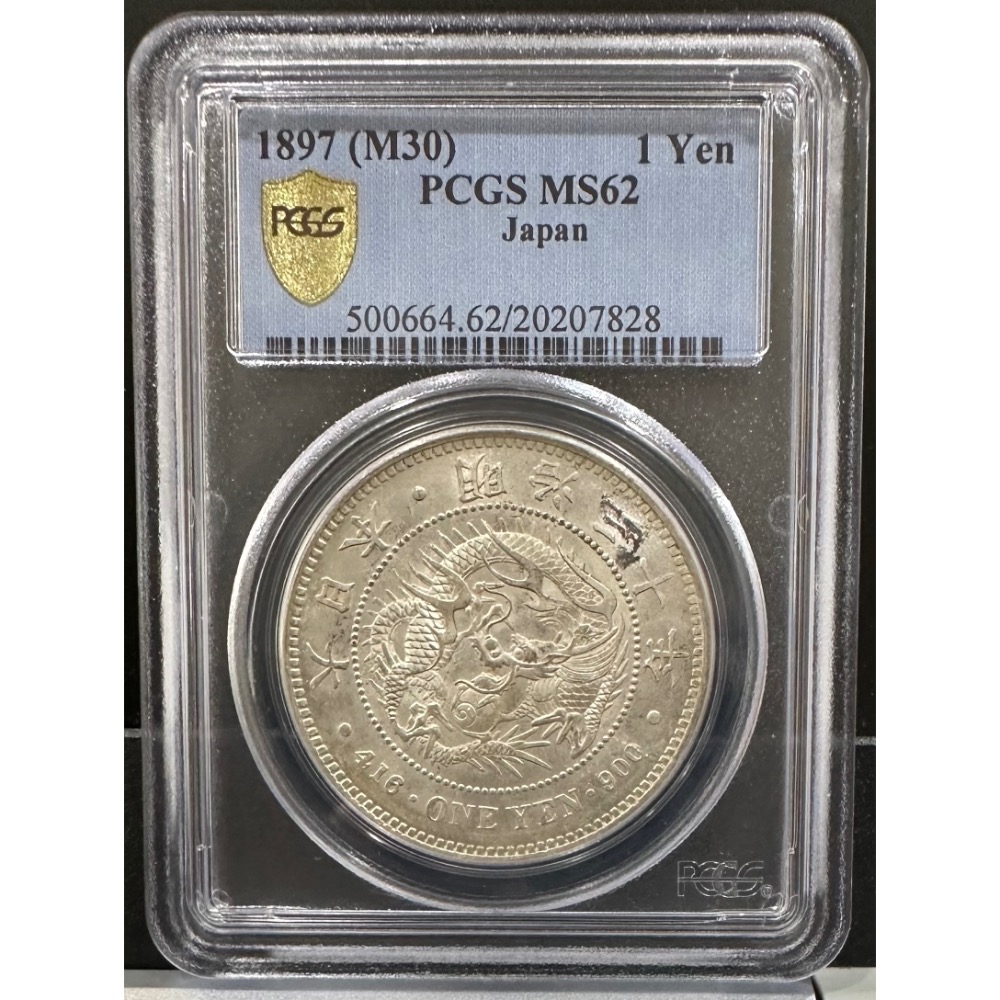大日本 明治三十年 明治30年 一圓 壹圓 一元 1元 龍銀 PCGS MS/62 日本龍銀 評級幣 鑑定幣[鴻兔小舖]