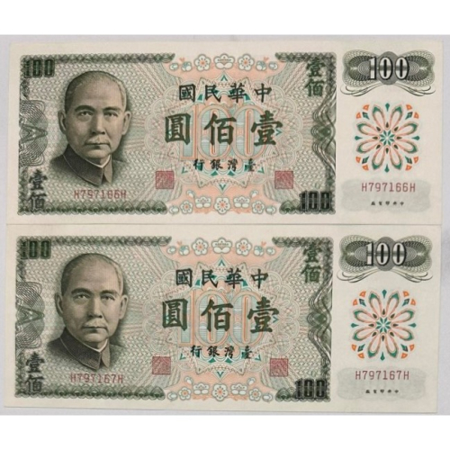 中華民國六十一年製版 民國61年 壹佰圓 一百元 百元 100元 G版 同字軌 HH字軌 雙H字軌 兩張連號[鴻兔小舖]