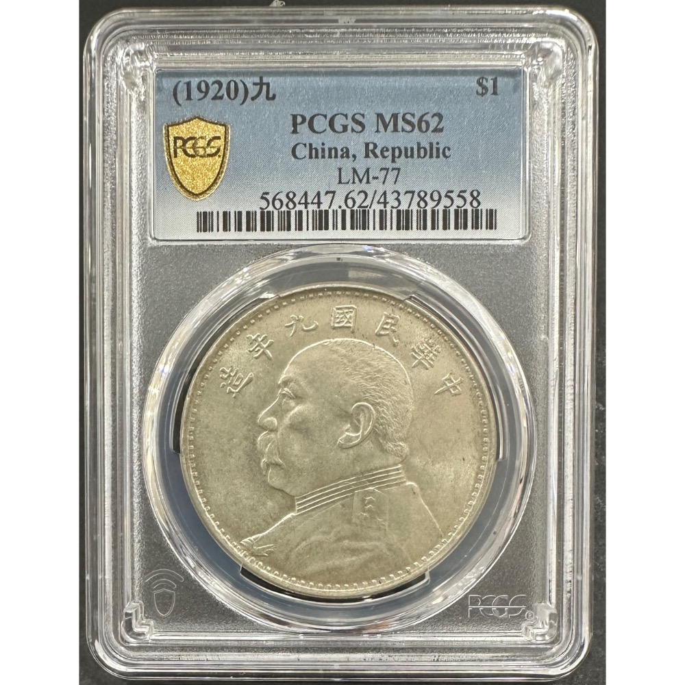 中華民國九年 民國9年 袁大頭 袁世凱 袁像 壹圓 一元 1元 廣州版 PCGS MS/62 鑑定幣 評級幣[鴻兔小舖]