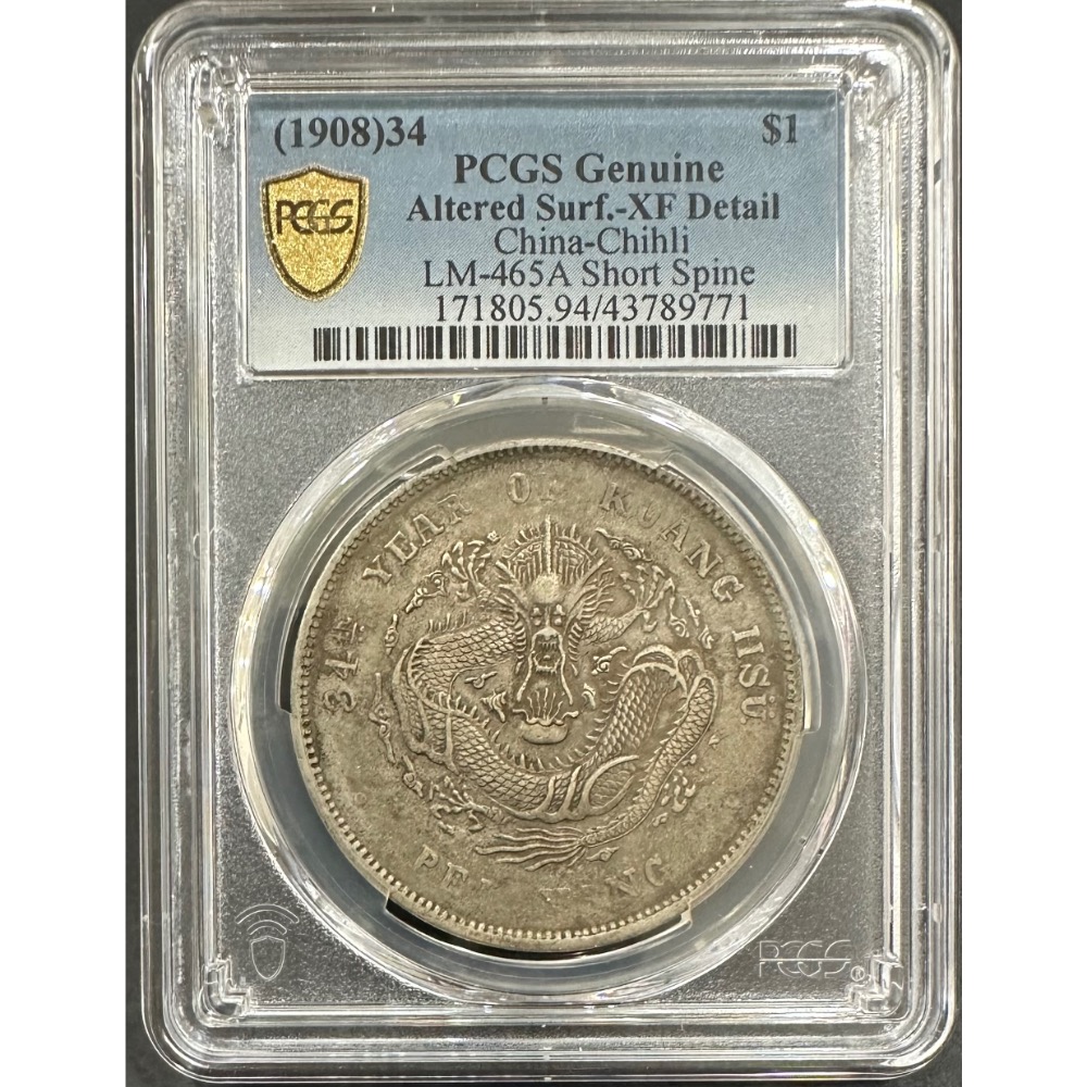 北洋造 34年 光緒元寶 庫平 七錢二分 7錢2分 龍銀 PCGS XF/94 短尾龍較少見 老包漿 北洋龍[鴻兔小舖]
